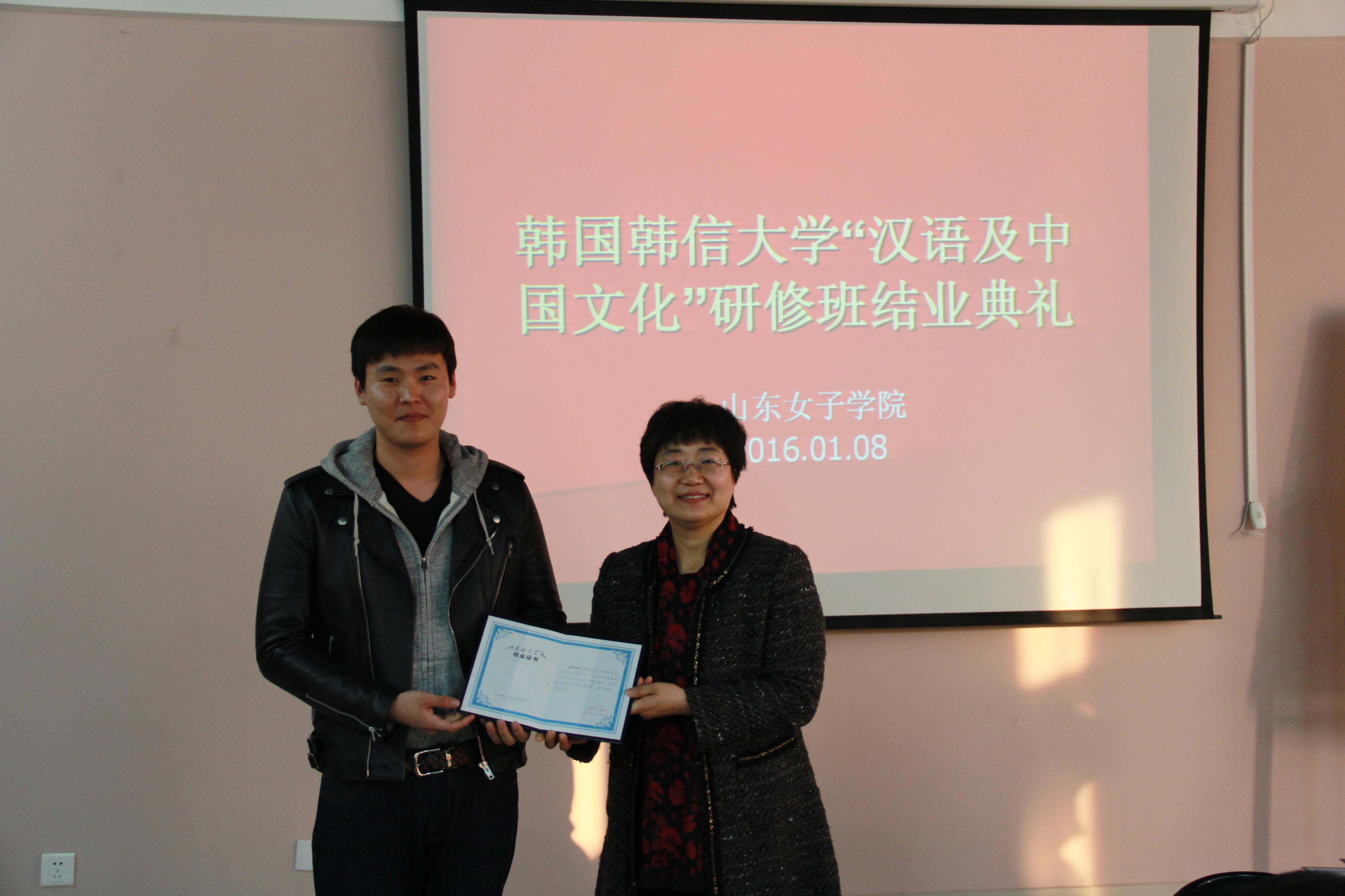 此次研修历时三周,这是我校第一次接受来自韩国的研修生。韩国学生在我校学习了汉语口语、太极拳、中国书法、民族民间舞、茶艺等课程,参加了我校举办的平安夜联欢晚会、猜灯谜活动并赴山东工艺美术学院民俗博物馆参观,与我校学生接下了深厚的友谊。此次研修班的顺利举办,为我校开设“汉语和中国文化”类短期课程奠定了基础并积累了宝贵的经验。