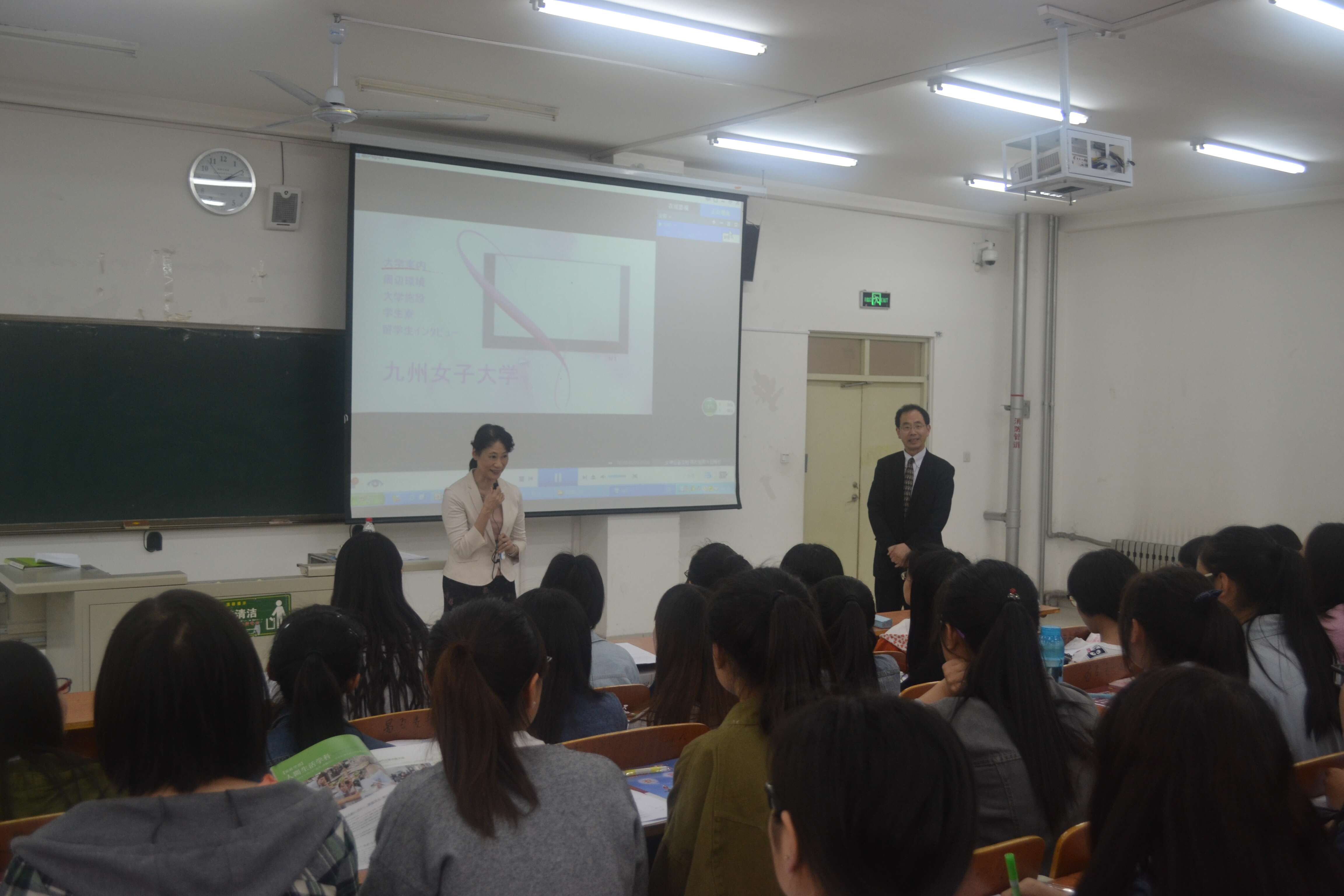 5月12日下午,日本九州女子大学大島真娜教授、矢崎美香準教授、方如伟教授一行三人来我校进行关于赴日学习交流的项目宣讲活动。 宣讲会上,国际交流合作处负责人介绍了我校同日本九州女子大学合作的具体情况及协议签署情况。随后,大島真娜教授通过PPT、DVD的形式对日本九州女子大学进行详细的介绍,并播放了在校留学生视频让我校学生更好得了解留学学习、生活。方如伟教授对山东女子学院与九州女子大学双学位联合培养项目及学生短期交流项目进行详细介绍并回答了学生们的问题。项目宣讲结束后,代表团一行在图书馆负责人的陪同下参观了图书馆及校史馆。 2014年9月,日本九州女子大学事务局局长因敏明带团访问我校,两校由此建立合作关系。2015年10月范素华院长率团访问日本九州女子大学并签署了《山东女子学院与九州女子大学学生短期交流项目备忘录》、《山东女子学院与九州女子大学双学位联合培养项目备忘录》。 九州女子大学创建于1962年,位于日本九州地区的福冈县北九州市,学校交通便利,环境优美。学校下设家政学系、人间科学系,共3个本科专业。该校与中华女子学院、湖南女子学院等国内女子高校结为姊妹学校,接受国内高校女生前往该校留学交流。