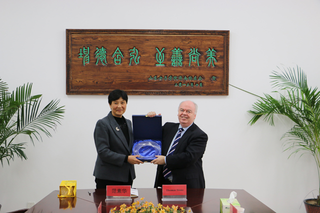 10月24日上午,爱尔兰塔拉理工学院校长托马斯·斯通(Thomas Stone)、发展部部长帕特·科曼(Pat Coman)及国际处斯特拉·布朗(Stella Browne)等一行四人来我校交流访问。校长范素华、党委副书记宿建沛接待了访问团,国际交流合作处、经济管理学院、旅游学院相关负责人参加了会谈。