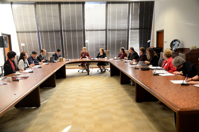 在德克萨斯女子大学访问期间,该校校长Carine Feyten亲自会见了我校访问团,双方各自简要介绍了学校的基本情况。美国德克萨斯女子大学位于德克萨斯州丹顿市,成立于1901年,是美国最大的公立女子大学,有1.6万名在校学生,其中三分之一是研究生,有较为丰富的科研资源,有专门从事女性研究的机构和人员。