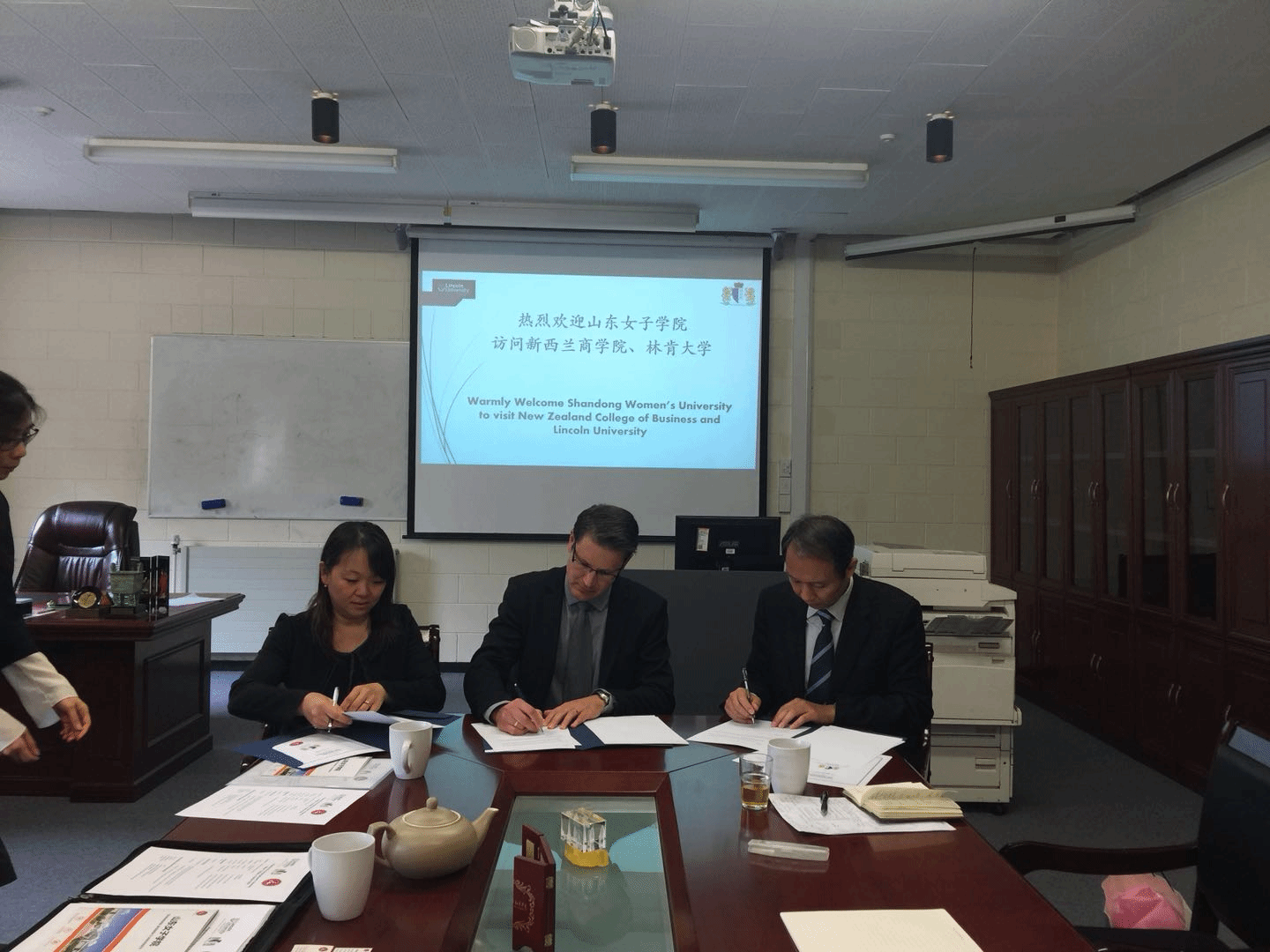 11月30日上午,在新西兰商学院(New Zealand College of Business),该校董事会成员同我校代表团举行了座谈会。双方围绕相关专业专升硕、本升硕项目进行了广泛探讨,交流了课程建设和专业合作问题。然后,代表团又同新西兰林肯大学(Lincoln University of New Zealand)重点就“金融学硕士+CFA”和“会计学硕士+CPA”项目进行了深入探讨,分析了项目建设的可行性和相关事项。最后,刘正林代表我校同新西兰商学院和林肯大学签订了三方合作备忘录。