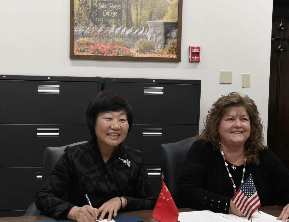 学校党委书记郭翠芬同圣玛丽女子学院校长Nancy Nekvasil签署合作协议