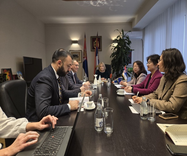 塞尔维亚教育部部长斯拉维察-久基奇-戴亚诺维奇(Slavica ĐUKIĆ-DEJANOVIĆ)亲切接见了访问团一行。在双方友好交流座谈会上,李光红介绍了学校的整体办学情况以及在促进性别平等和妇女儿童发展等方面做的工作和探索。戴亚诺维奇部长高度评价了学校在性别研究领域取得的丰硕成果,希望中塞高校进一步加强在科技创新、人工智能、教育人文、健康养老等领域合作,共享机遇,实现共赢。双方确认了学历互认这一关键环节,达成了与克拉古耶瓦茨大学进行学生联合培养的意向。塞尔维亚教育部助理部长Janko Samardžić MD及教育部部长特别顾问Miodrag Milovanović K等相关人员共同参会。