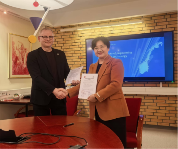 在挪威北极大学纳尔维克校区,访问团与该校工程科技学院院长Bjørn R Sørensen、研究部副主任Svein-Erik Sveen、工业工程系主任Wei Deng Solvang、计算机科学和计算工程系主任Aleksander Pedersen、电机工程系主任Ariild Steen、国际合作科Jianfei Feng Sørensen等进行了座谈交流。双方就工业工程、健康养老领域的合作意向展开讨论,在学生培养、教师合作研究等方面进行了深入探讨。