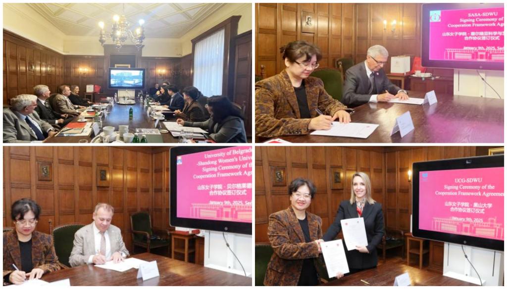 在塞尔维亚科学与艺术研究院(SASA),访问团与研究院秘书长 Nebojsa Lalic院士、SASA数学研究所副所长Miodrag Mihaljevic院士,贝尔格莱德大学副校长Nebojsa Bojovic教授、Vesna Todorcevic教授,黑山大学董事会成员Nevena Mijajlovic教授座谈交流。李光红介绍了学校的办学特色、学科优势以及国际化办学的需求,详细了解了对方高校和科研院所的办学情况,就学生留学、教师访学、海外引智、科学研究、中外合作办学项目等方面进行了意见互换,与SASA数学研究所、贝尔格莱德大学和黑山大学分别签署了合作协议。访问团对塞尔维亚科学与艺术研究院进行了参观。